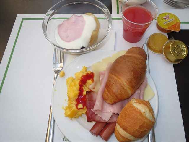 豪華と言う程ではありませんが、基本的な物は揃っています。オレンジジュースは余りに薄くてまずかったです。