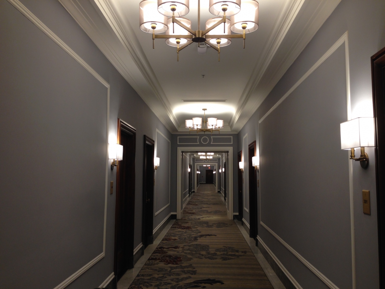 ホテルの内装は豪華で、特にエントランスから続く廊下がとてもゴージャスです。