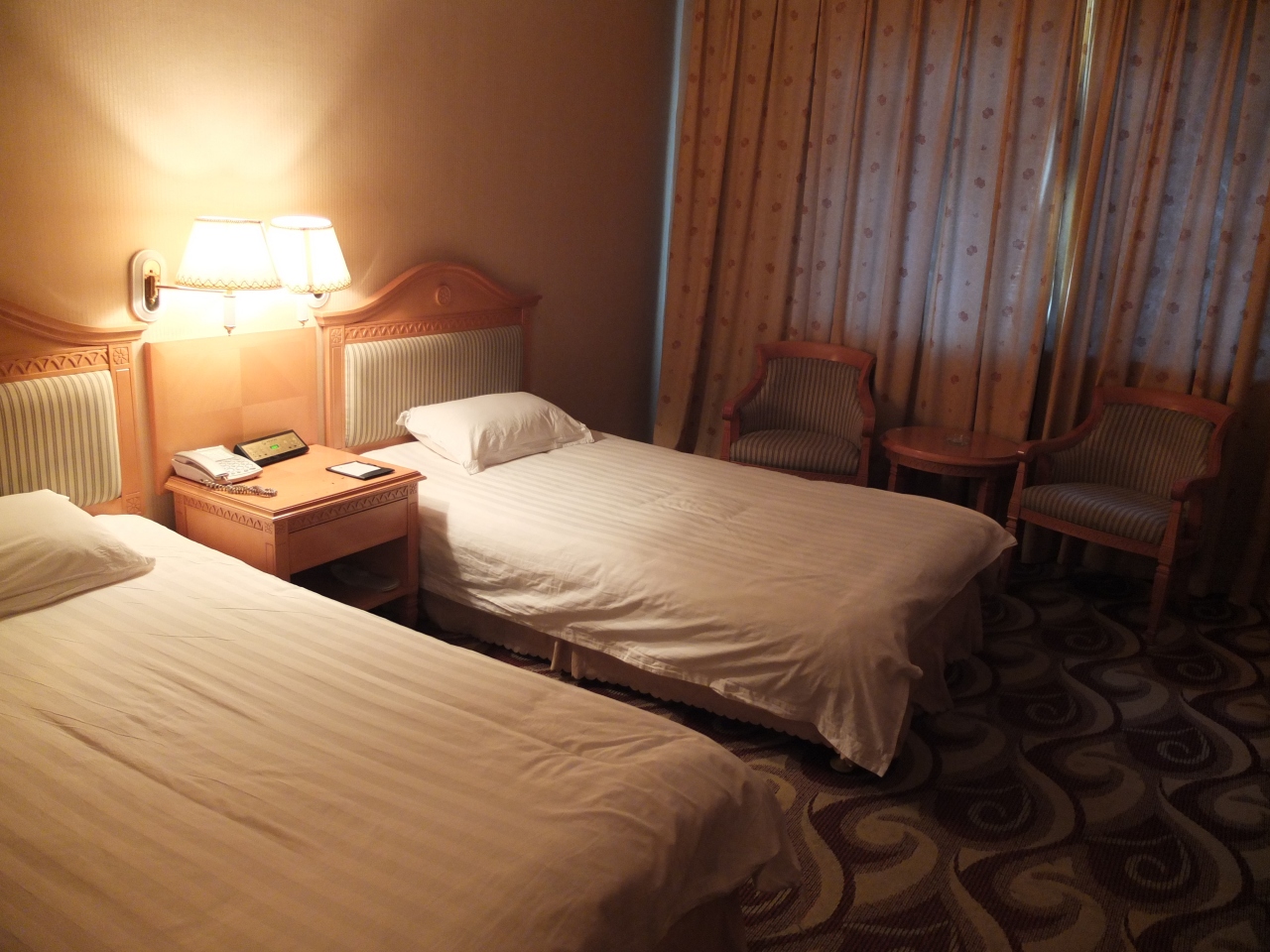 デラックスルームに宿泊しました。部屋というより、建物自体がタバコくさく、恐らく換気扇に臭いがついているレベル。浴室も明らかに汚くて、浴槽に水を貯めるのも嫌な感じでした。部屋は見た目きれいですが、ベッドは硬かったです。フロントは眠たげで、英語はかすかに通じる程度。朝食付でしたが、特筆すべきまずさでした。オススメはしません。