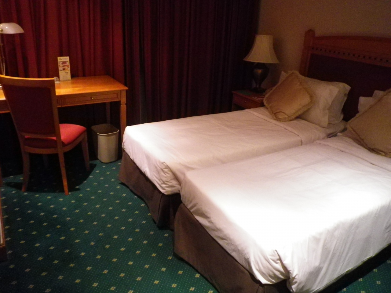 部屋は20階のツイン。そこそこ広い部屋ですが、ベットルームとリビングを無理に区切らなくても、という感じではあります。ベットは少々堅め。
