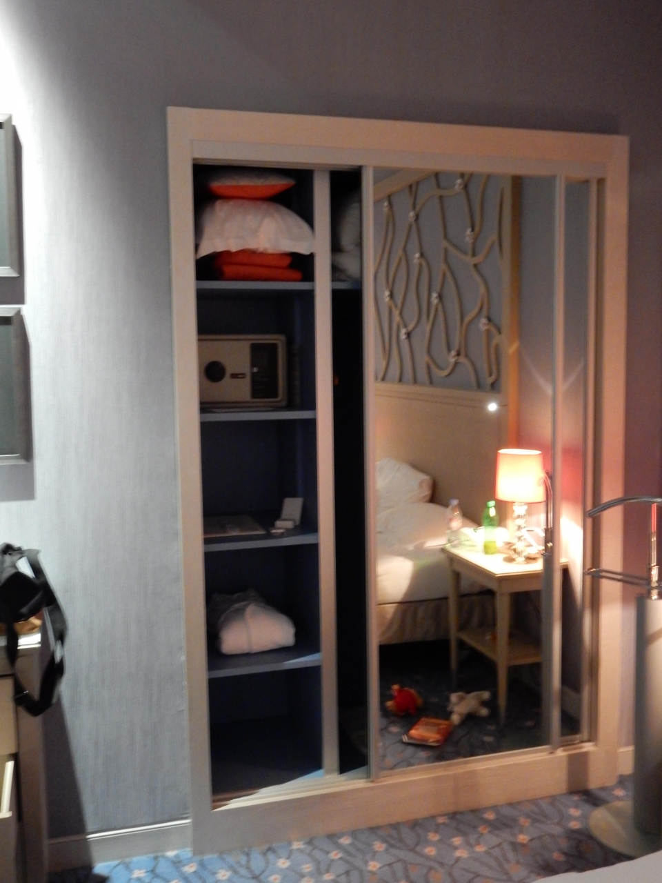 部屋の設備は冷蔵庫(中には有料の飲み物などいっぱい)もあり、ポットもありでした。金庫もあって安心でした。風呂場のドライヤーは備え付け。