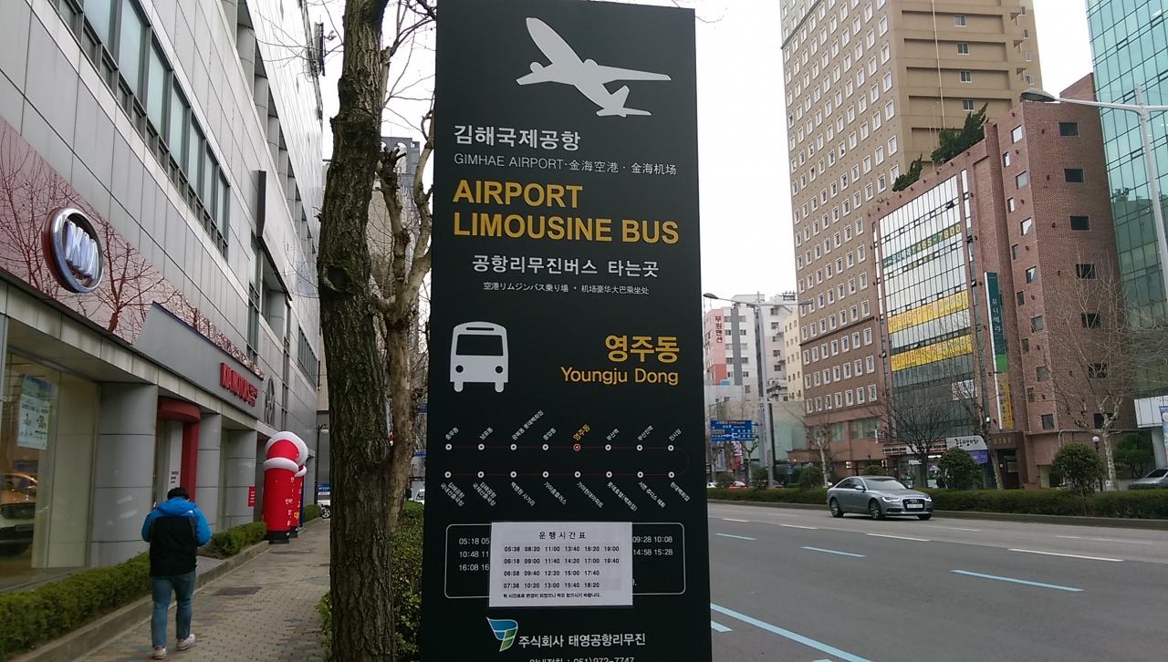 金海国際空港からのリムジンバスが、ホテル前に停車します。