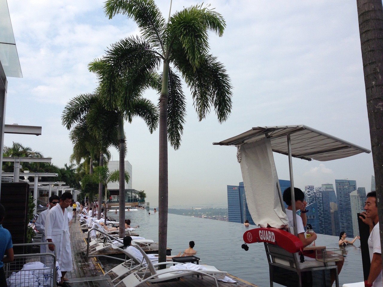 そしてなんと言ってもマリーナベイサンズと言えば屋上のプールです。朝と夜と両方行きましたが、そんなに混むこともなく、ゆったり利用できました。眺めは言うまでもなく最高でした!休憩しながら軽食をオーダーすることもできまさした。とにかく眺めが最高でしたので、絶対にまた来たいと思いました!