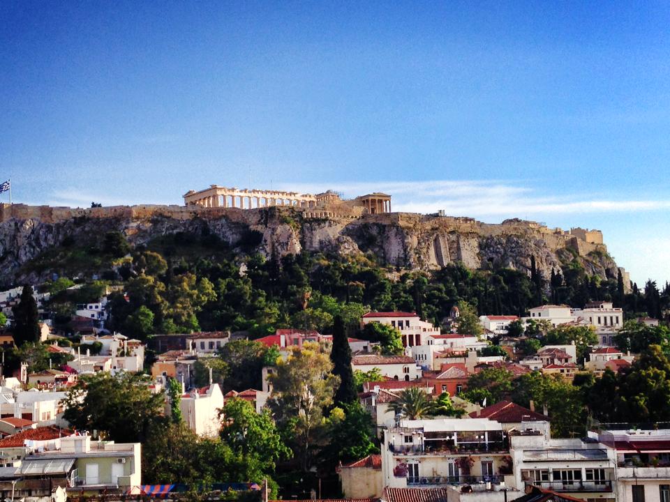 部屋は狭く、バスルームはシャワーのみでしたが、2泊目はメテオラに行くため荷物置き場という感じで利用しました。
