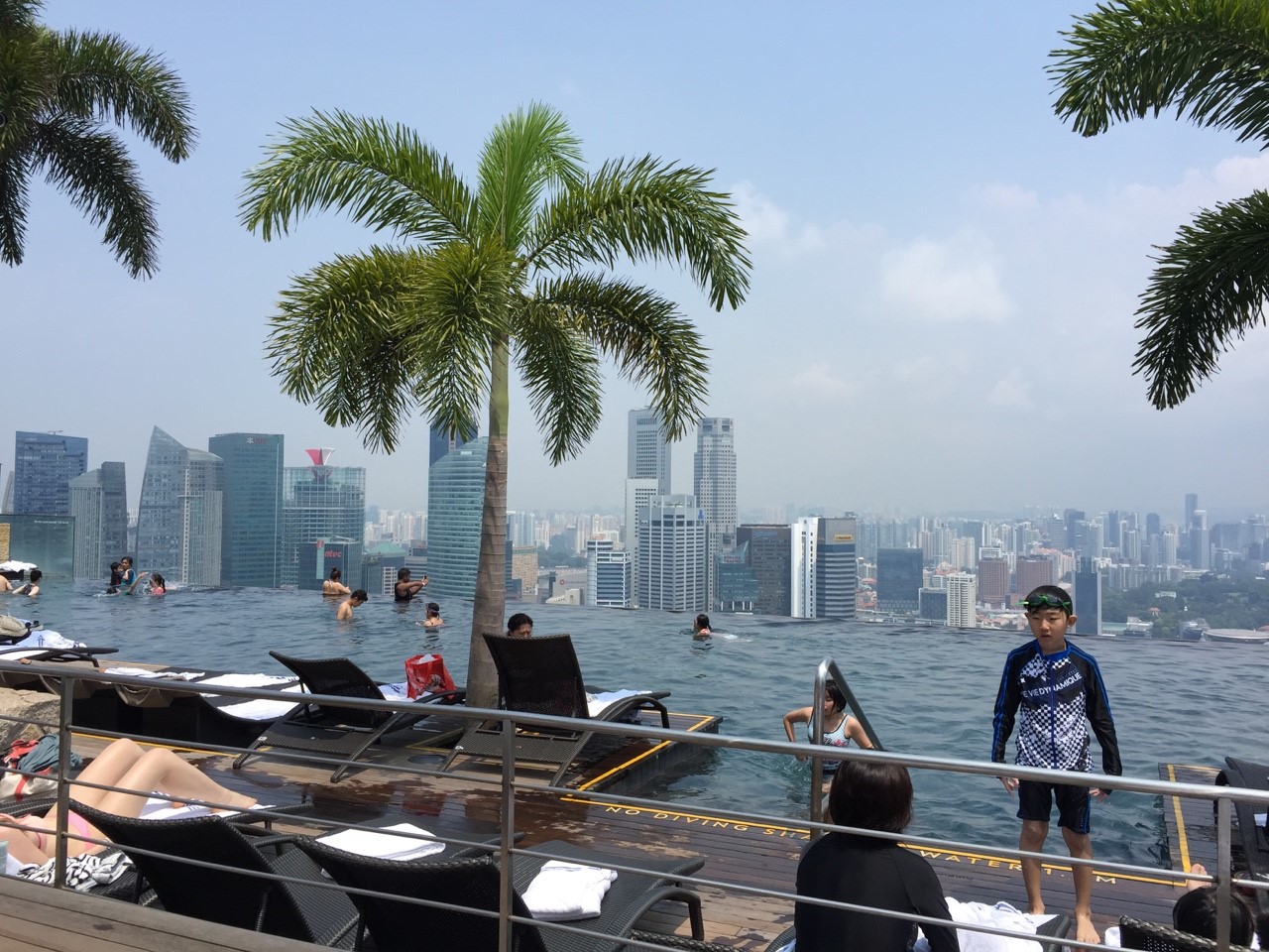家族で行きました。外を歩くのはとても暑かったけど、屋上のプールは水が冷たいくらいでした。屋上のプールは、本当に空に浮かんでいるようで、とても良かったです。150mの長さがあるので、たっぷり泳げました。朝、昼、夜と何度もプールに行きました。