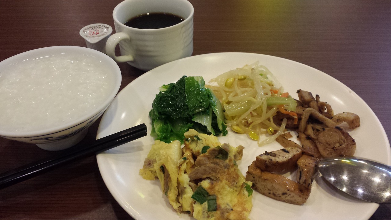 朝御飯はお粥とパン、おかずが5品ほど。味は普通。コーヒーがあるのが嬉しいです。砂糖とミルクは自分で入れるタイプです。