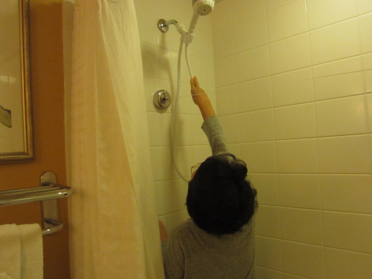 昨年から少しずつ改装をしているので、食器なども新しくはなっていました。バスルームのシャワーの取り付け位置が高すぎて150?の家内は届きません。外して使うことも適わないので下の蛇口で済ませていました。途中に1か所フックを付けてくれると良いのですが・・・なかなか利用者の声は届きませんね。ちなみに、カリアタワーのバスルームも同じ状態だったのを思い出しました。体格の良い方が基準になっているのかも。