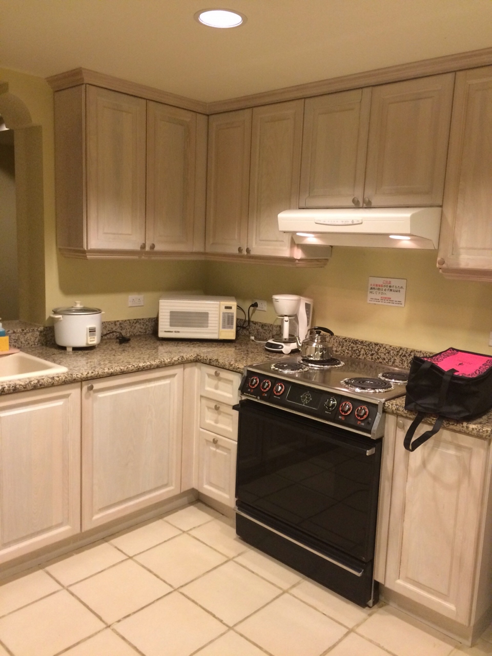 バスルームは1つは日本式の洗い場のあるバスで1つはユニットです。キッチンンも広く調理に支障なく色々な物が揃っています、洗濯機と乾燥機もあります。