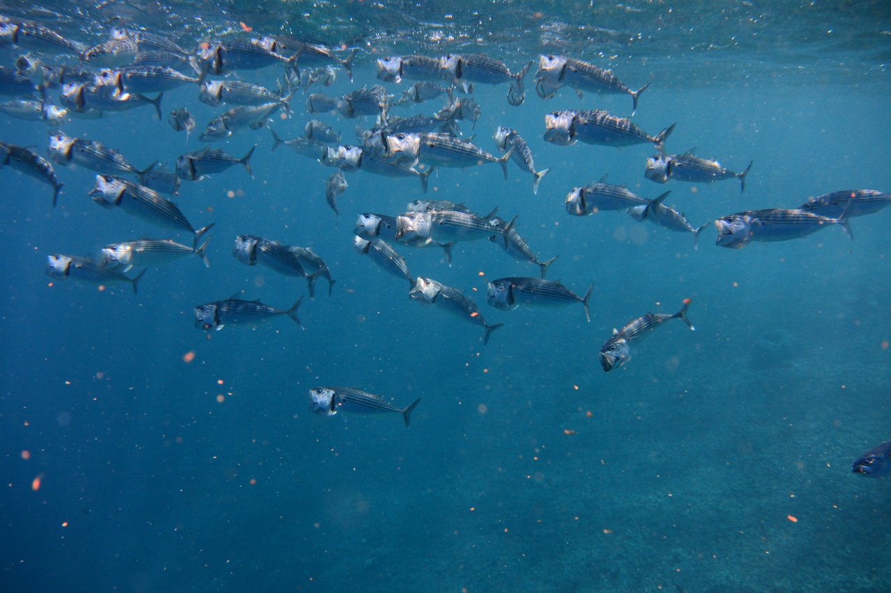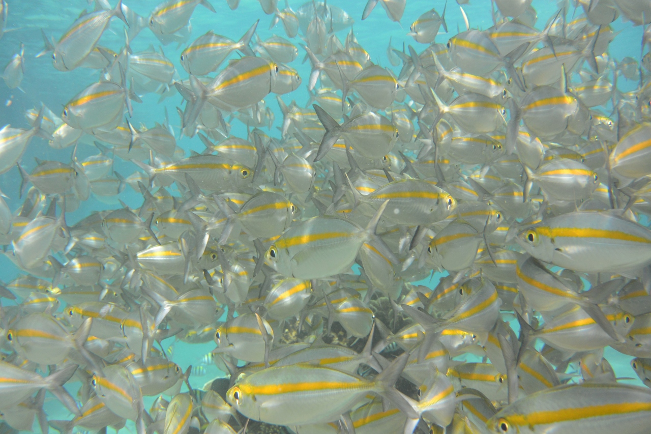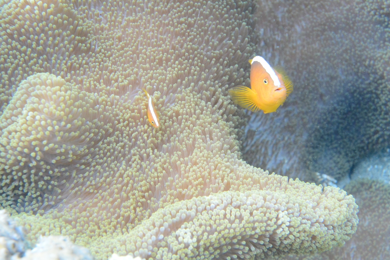 プールのような、リゾート全面に広がる海は魚たちの宝庫。