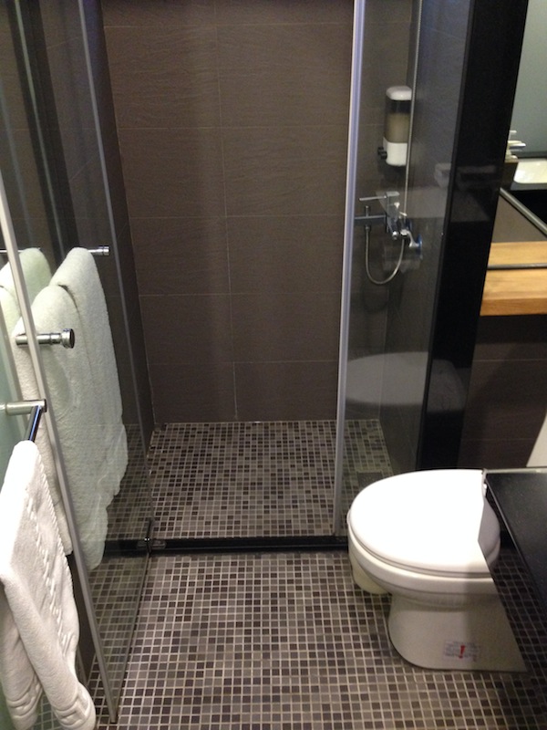 バスルームは洗面所、トイレ、シャワールームのみで、浴槽はついていませんでした。ホテル内にはコインランドリーや電子レンジ等が利用できる共有スペースもあります。