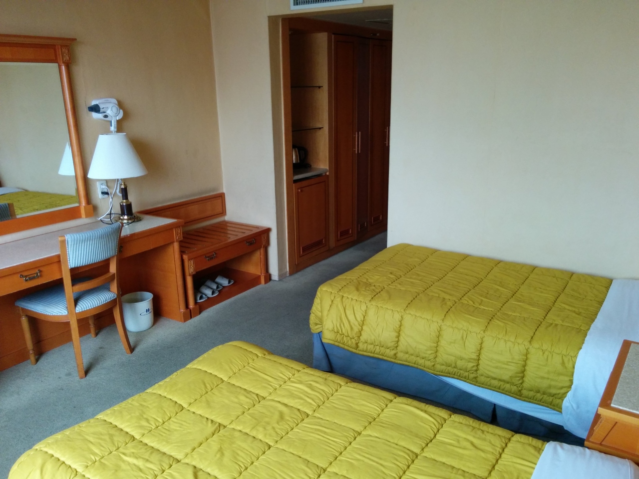 お部屋もまあまあ広く、キレイではないけど十分だと思います。