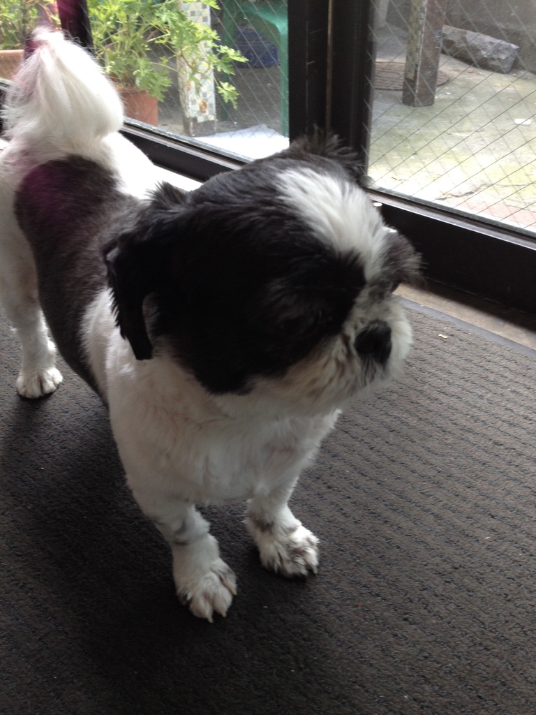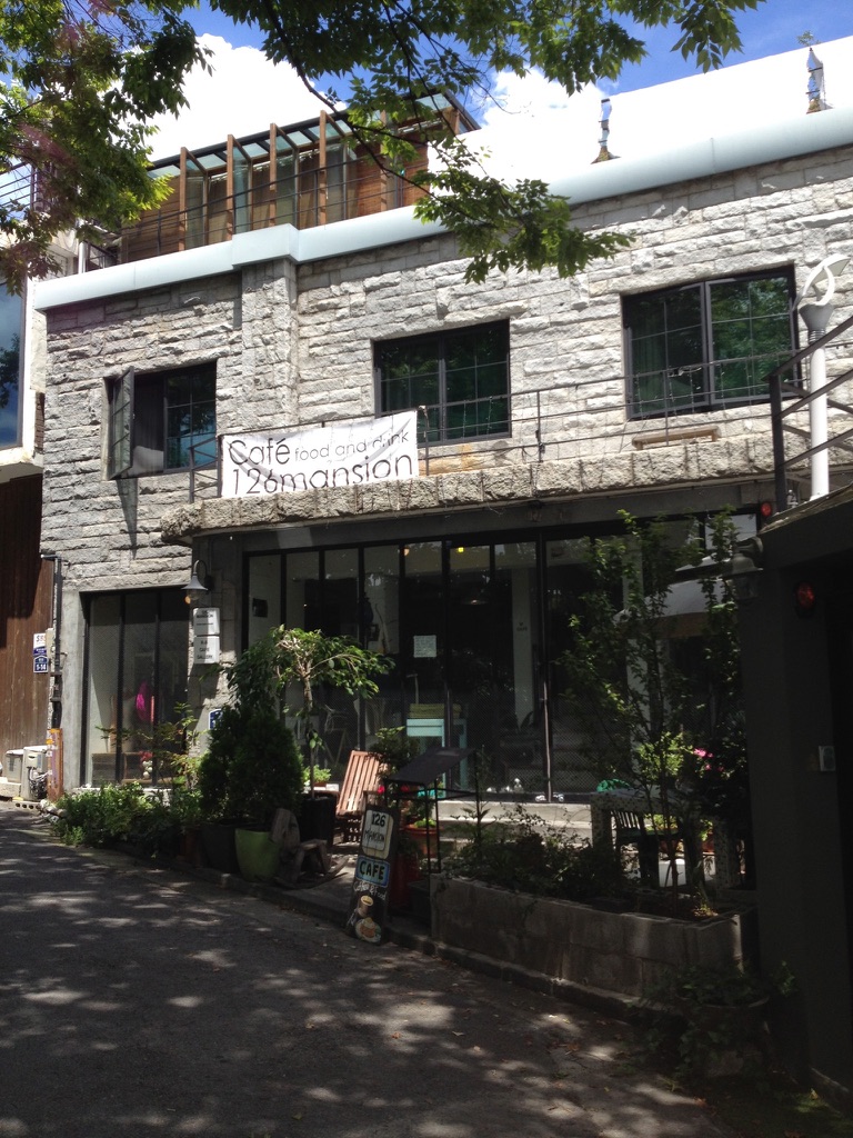 とても素敵な建物で、1階はカフェになっています。看板犬のかわいいシーズー犬(かな!?)がいて、癒されます。
