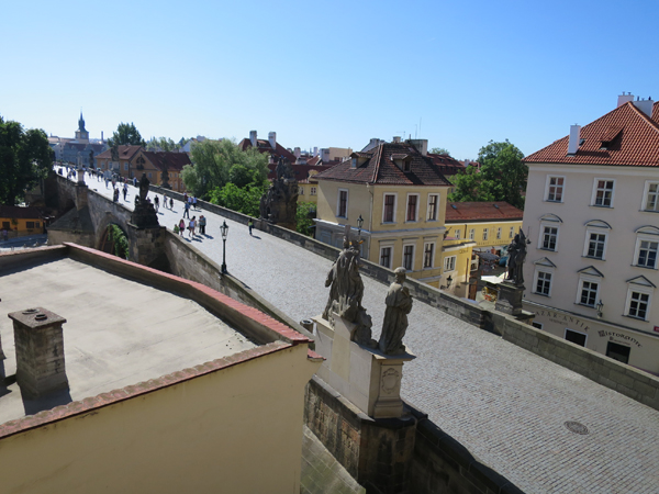 カレル橋を見下ろせる部屋指定で予約しました。カレル橋は長いので、たもとの部分しか見えませんが、橋まですぐなので夜でも安心して夜景を楽しんだり、早朝、ほとんど人のいない時に散歩できたりして、とても良かったです。ホテルにはエレベーターもなく部屋もこじんまりとしていましたが、歴史ある建物ということで、雰囲気は良いです。ホテルスタッフも感じがよくて、宿泊者は併設のレストランで20%オフになる特典も付いていました。