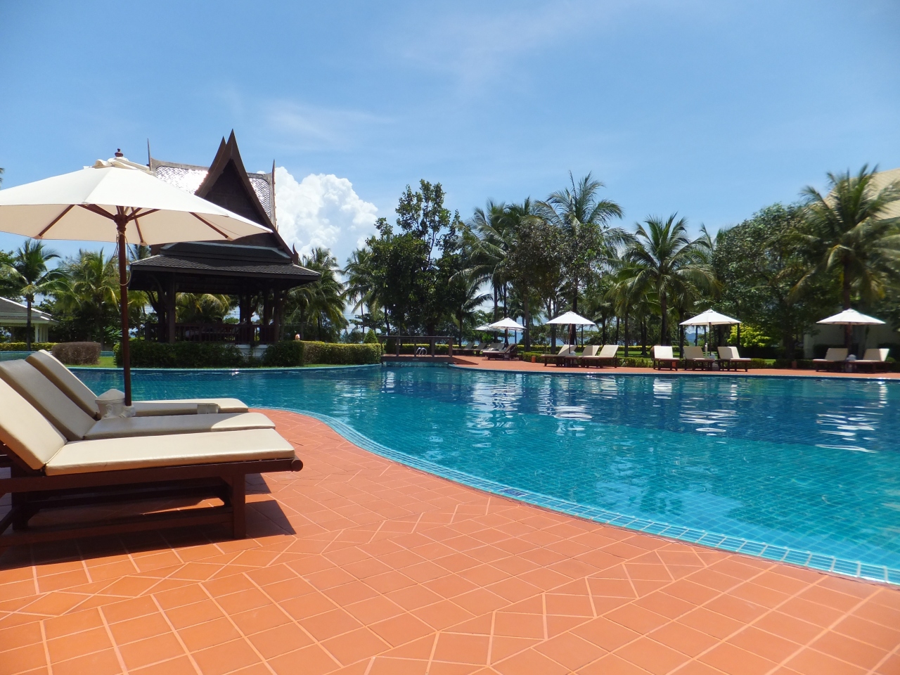 クラビにある高級リゾートホテルです。フロントは開放的なレイアウトでリゾート感満載です。プールはかなり大きく、プールに隣接したバーがあり、またデッキチェアも多くあり場所取りに困りませんでした。海へ行くには、ホテルのプールを通過、道路一本を渡ってすぐです。プライベートではありません。部屋はバルコニーが付いており、プール、そしてその向こうに海を眺められる景色でした。朝食付きにしましたが、種類が多く数日の滞在では全く問題ありませんでした。