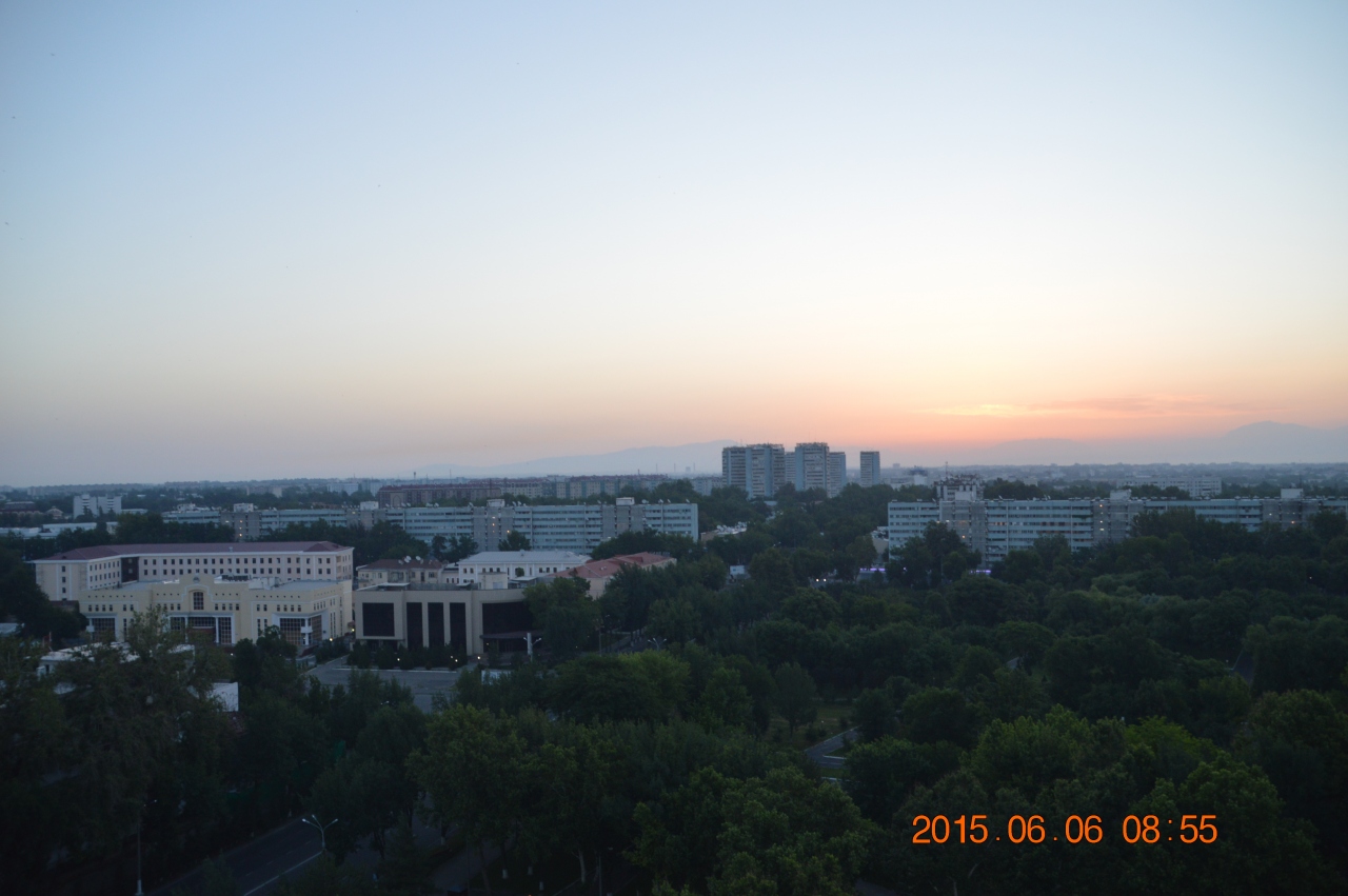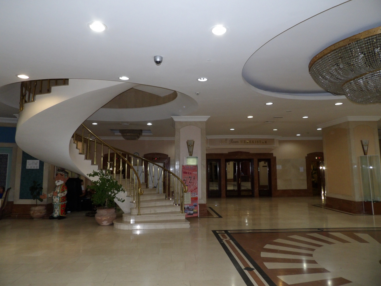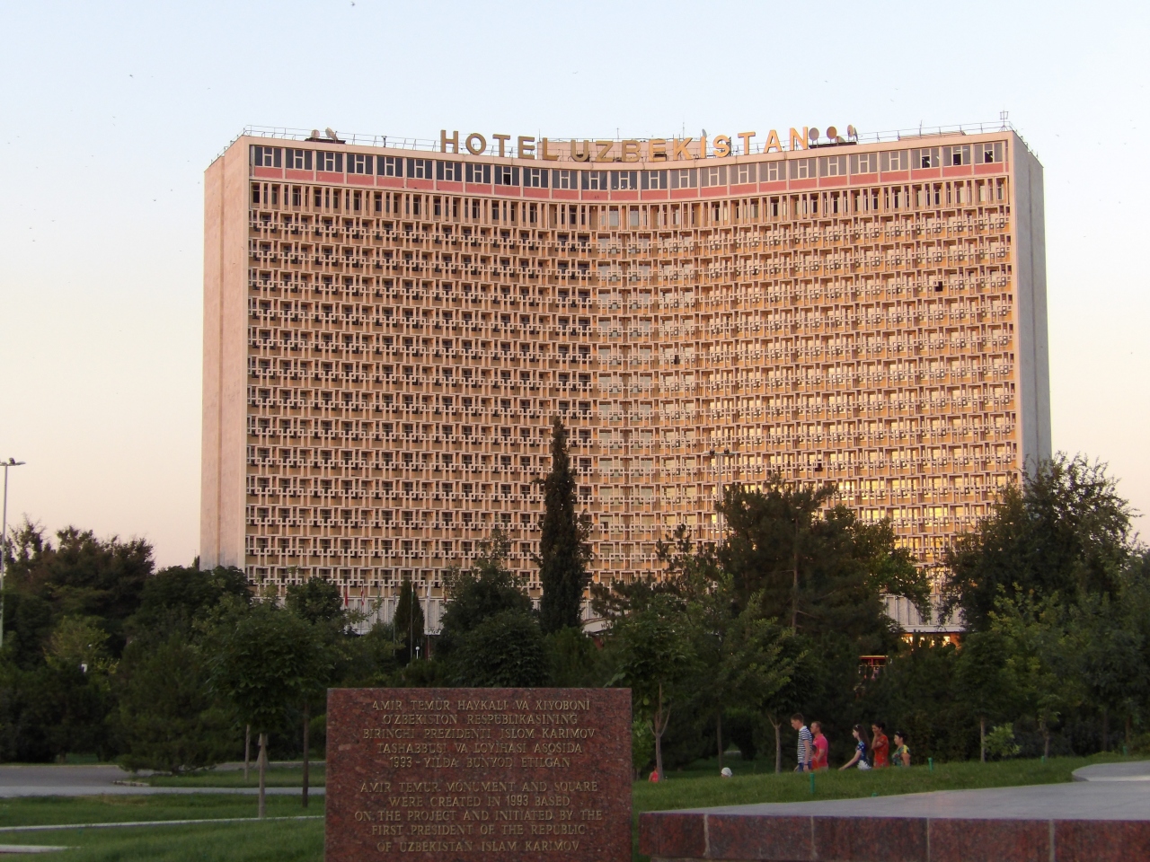 タシケント空港からタクシーで15分ほどのティムール広場に面した静かな場所にある大型ホテルです。周囲には時計塔、ティムール博物館、ブロードウェイなどがあり、ゆっくりするには最適です。部屋は古さがありますが、非常に広く、収納家具は使いきれない程沢山ありました。近くに商店はなく、ブロードウェイ近くのスーパーまでは約15分かかりますが、ホテルの1階ロビーには売店があり、水、パン、軽食などが利用できます。地下鉄ティムール駅は隣接しており、移動には極めて便利です。6月に5泊しましたが、結婚式、パーティが毎日のように執り行われていました。滞在するにはお勧めのホテルです。