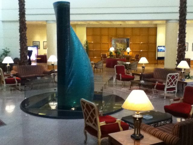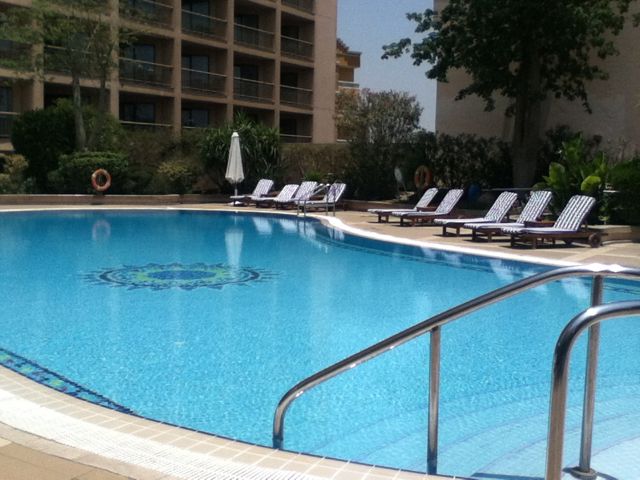 カイロの市街地から離れており、ホテルの周辺には買い物や食事ができるところはない。徒歩圏には何もないので、タクシーを使うことになるが、ホテルスタッフが勧めるホテルに待機している車は、無駄に高いのでホテルから少し離れてメーター付タクシーをひろったほうがいい。ホテルも客があまり居なくて寂しい感じがした。人が少ないせいか、やたらと冷房が効きすぎていてロビーが寒い。プールもレストランも無人で居心地が悪い。