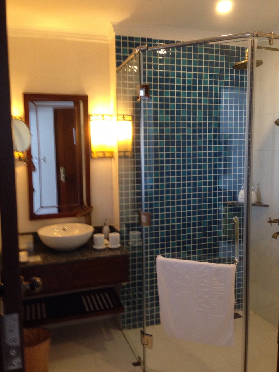 最初にチェックインした部屋はバスタブ付きでしたが排水が悪く、夜明け前にニワトリの鳴き声で目が覚めてしまったので部屋を替えてもらいました。
