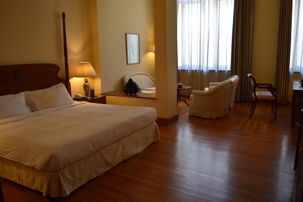 大晦日に1泊しました。agoraで予約、1泊49939円、同じ年の2月に予約(宿泊の10ヶ月前)。英国の統治時代からのなごりか、アフタヌーンティ(のみ、宿泊なし)でオプショナルツアーがくまれたりしているホテルです(ちなみに、今回はアフタヌーンティーはスイーツの種類が多すぎてあまり好みではないので今回は体験なし。スイーツは1個でいい派です)。建物自体はやや古い感じはありますが、落ち着いた雰囲気。ホテルの玄関が今ひとつこじんまりしていますが、ホテルの施設自体は清潔で、外の喧噪とは別世界です。