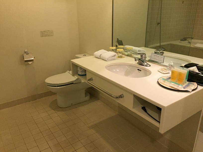 部屋に洗浄便座(水しか出ません)があったのには驚きましたが、快適でした。しかし私たちが宿泊したツインの部屋はホテルのロビーから離れていて、毎回廊下をかなり歩かされました。
