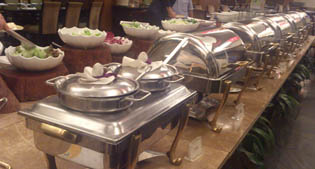 東莞市内からタクシーを利用して10分くらい。丹精な高級住宅街を通って良く整備された沿道や池の脇を走って行くと大きなコンベンションセンターのような建物が見えて来ます。広い施設は清潔で贅沢な空間になっています。各国のレストランが揃っていて 中華、日本食、ブラジル料理もあり特にシェラスコ料理はお薦めです。