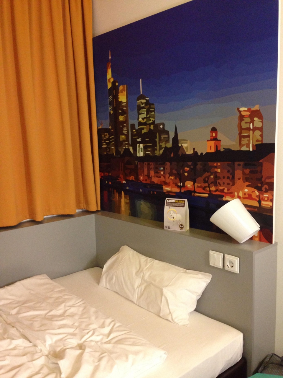 日本のビジネスホテルのような感じで、部屋は広くなく、必要最低限のものがある程度です。道路沿いにありますが、窓を閉めれば気になりませんでした。ドイツのホテルには珍しくエアコンがついています。チェックアウトは必要ありません。電車の時間が決まっていても、チェックアウトの為に早めにでなくてもいいのは助かりました。