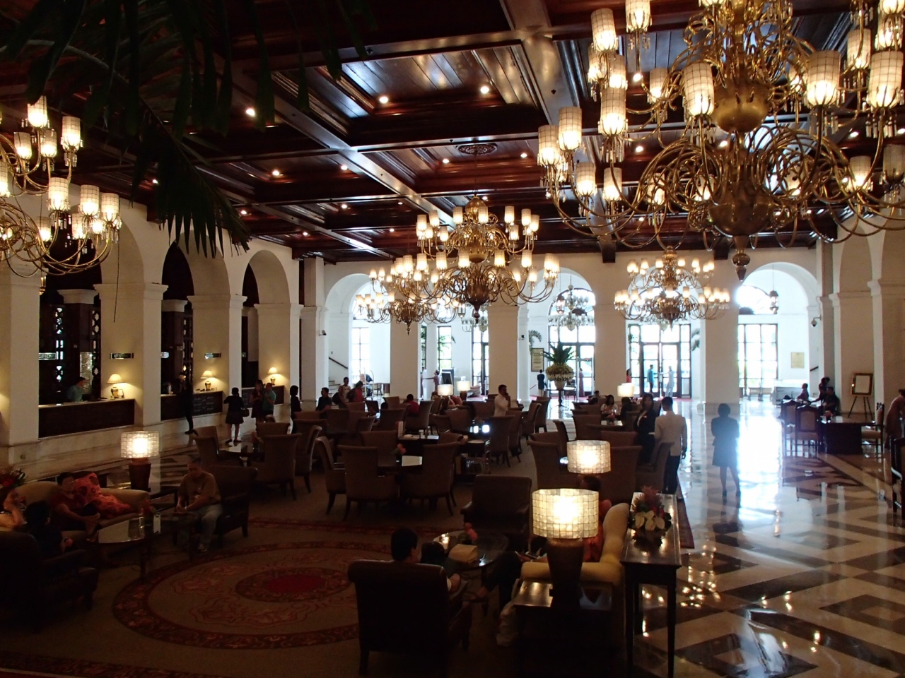 敷地内に入る時点で厳重なセキュリティチェックが有り、エントランスからロビーに至るまで天井が高く豪華なシャンデリアがあしらわれています。まさに往年のVIPを迎え入れたクラシックホテルの名に恥じない佇まいです。