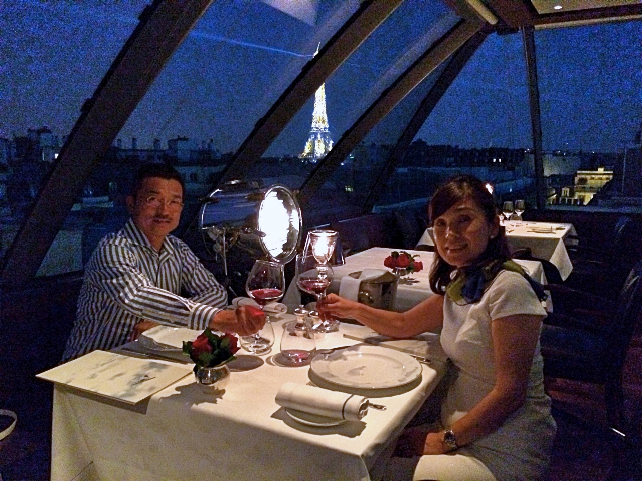 ディナーを屋上の『ロワゾーブラン』で頂きました。エッフェル塔が美しく、夜間の毎正時に宝石のようにきらめくシャンパンフラッシュを見ることができよかったのですが、お味はフレンチとアジアンキュイジーヌの融合にいまいちついていけませんでした。