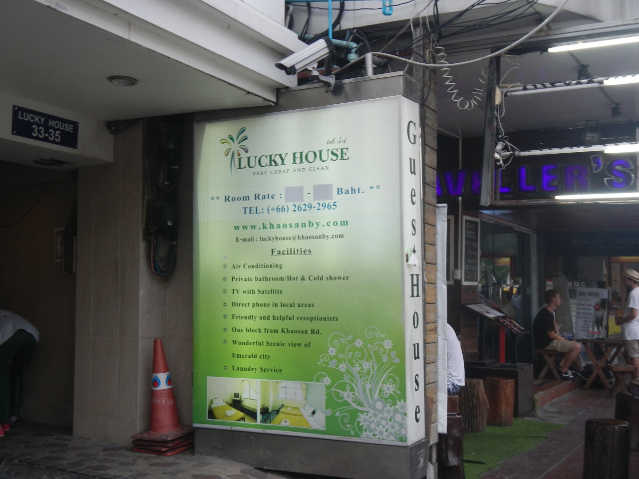 カオサンロード近くのチャクラポン通りにあるゲストハウス。予約サイトを通して1494円で予約する。部屋はエアコン付のダブルルーム。WIFIがまともに使えなくて苦労した。部屋にはテーブルも洋服入れもない。安いが設備は貧弱だ。