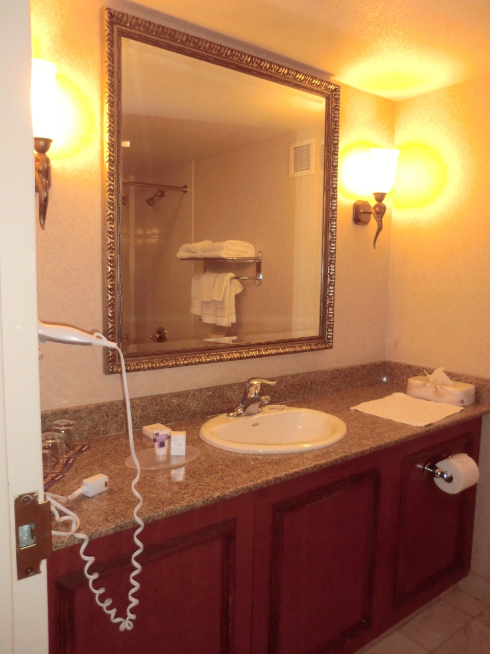 1Fはカジノです。スロットマシンーン、ルーレット、ポーカー、何でもあります。あの音だけで圧倒されます。24時間カジノはやっており、人の出入りは全くの自由です。2泊しました。部屋はスタンダードのツインです。ベッドは大きいです。結構、寝心地は良かったです。ランプシェイドは傾いてました。バスルームは広いです。やや、タオルを含めて使用感はありますが、問題はありません。立地はLas VegasのStrip通りにあり、最高です。目の前はMirageホテル。Wi-fiは部屋で使用すると1日13ドル程度かかります。1Fのロビー付近だと、メールの登録のみで無料です。隣にマクドナルドがありますが、そこでも無料のWi-fiが使えます。
