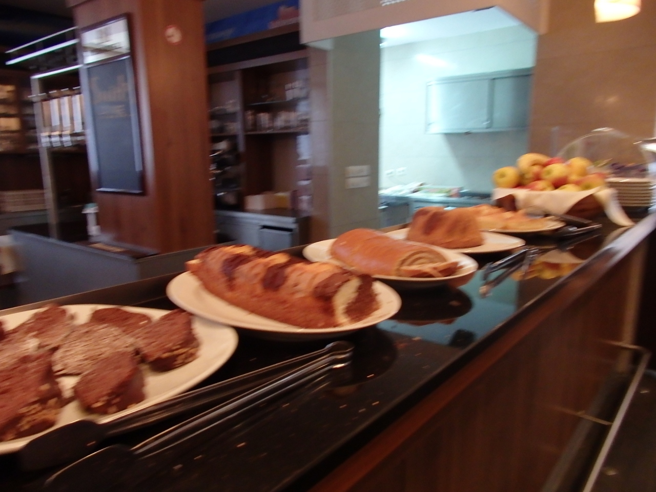 朝食は7時から10時、数種類のハム&チーズ、生ハム、トマトやキュウリ、パプリカ、フェタチーズやミニトマト、スクランブルエッグにゆで卵、フルーツ、ヨーグルト、シリアル類、ケーキ5種類、ナッツやジュース・・・など内容にも満足できる朝ごはんでした。エスプレッソマシンもありました。スタッフも皆さん親切で、チェックアウト後の荷物預かりも安心して任せられました。