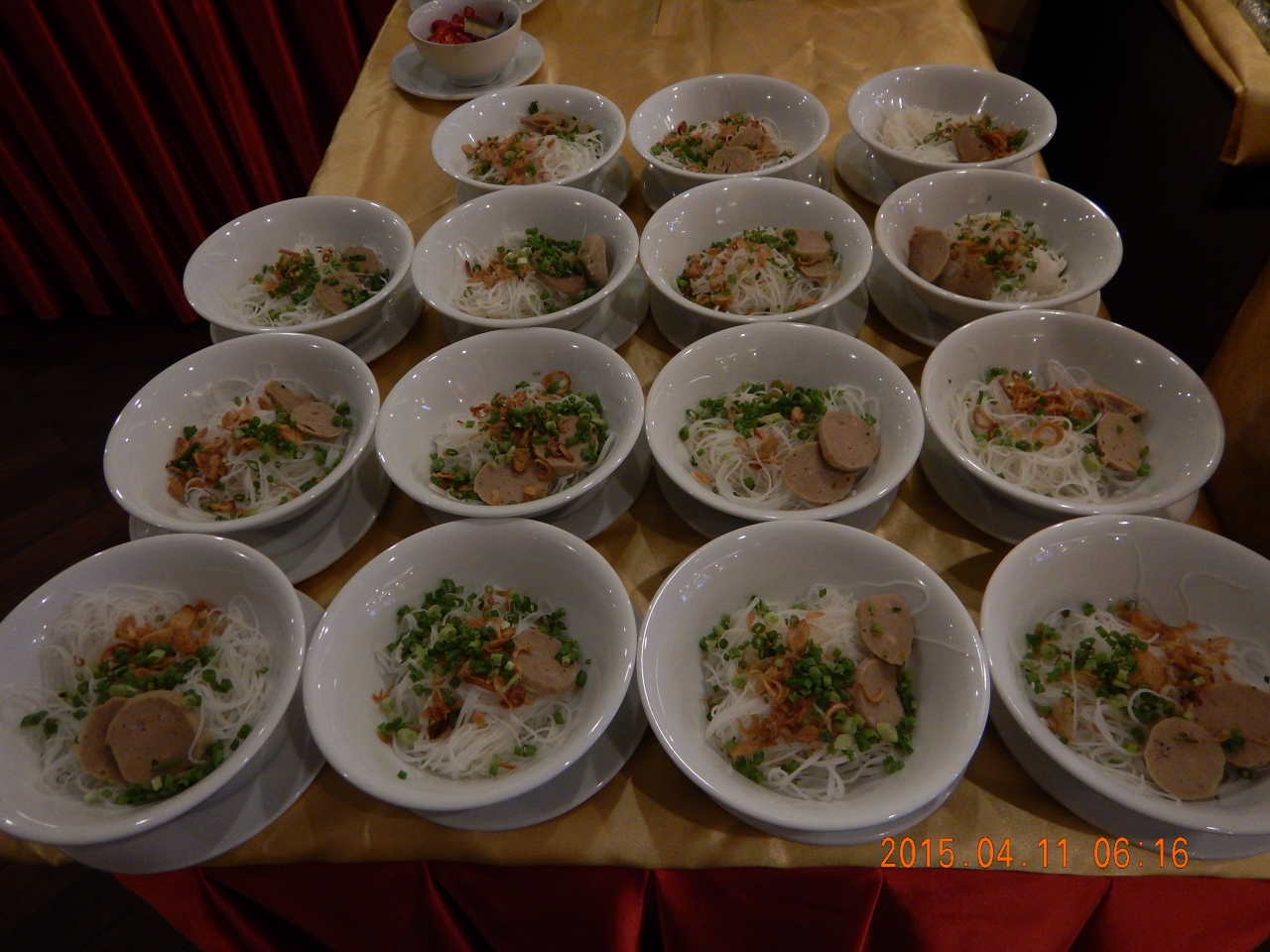 フォー・フランスパン・サラダ・ペストリー・ハム・フルーツ