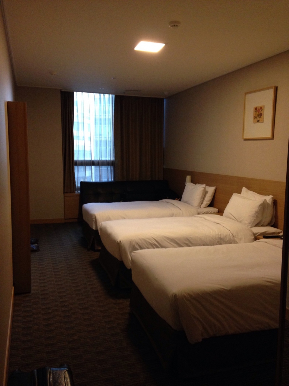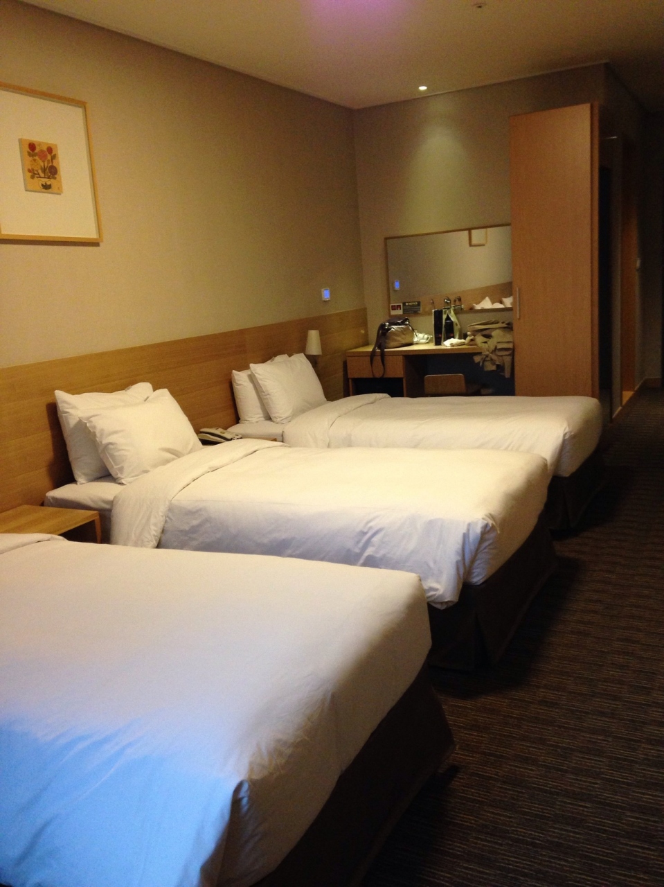 今回の旅は私と姉夫婦との3人だったので、考えた条件は、ベッドが3つあるトリプルルーム・高速バスのバス停や駅が近い・バスタブがあり清潔など。