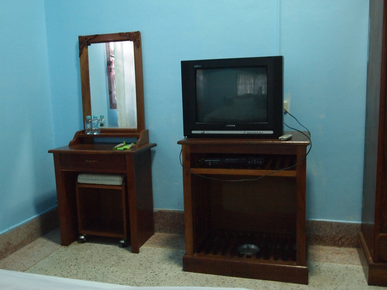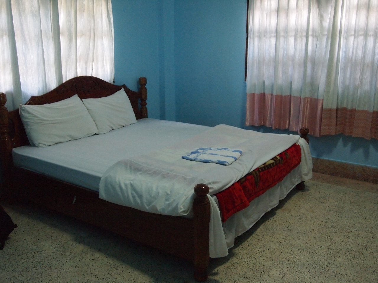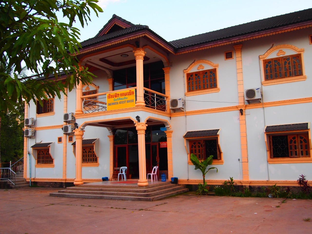ムアンシンの滞在で利用しました。メインストリートと市場方面の道路の交差点にあり、どちらに行くにも便利です。部屋は広く天井も高いので、ゆったり感があります。Wベッド・ファン・TV付きで一泊7万キープでした。お勧めの宿です。