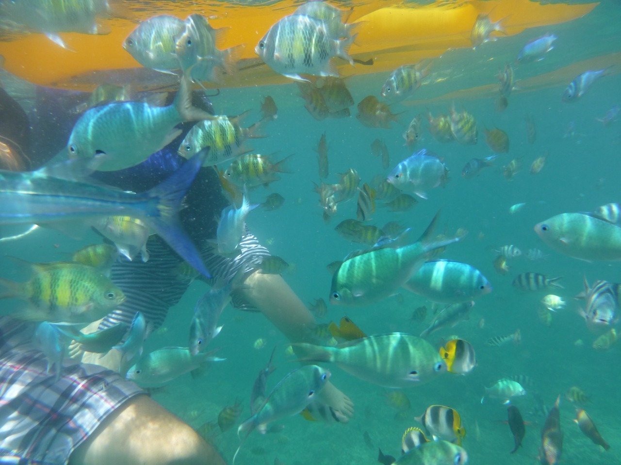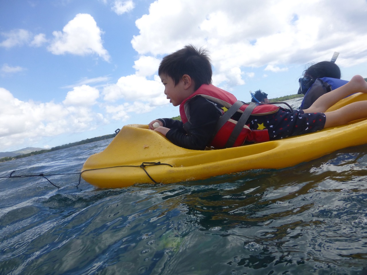 外にでればプールは最高、魚と一緒に泳げるエリア、カヌーなど楽しめます。ビーチカウンターで申し込んだオプショナルツアーで、幼児は海の中が見える浮き輪に乗り、大人はシュノーケルをつけて魚と一緒に泳ぎました。