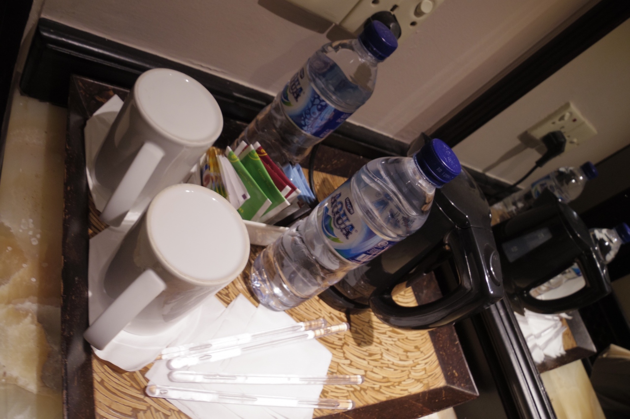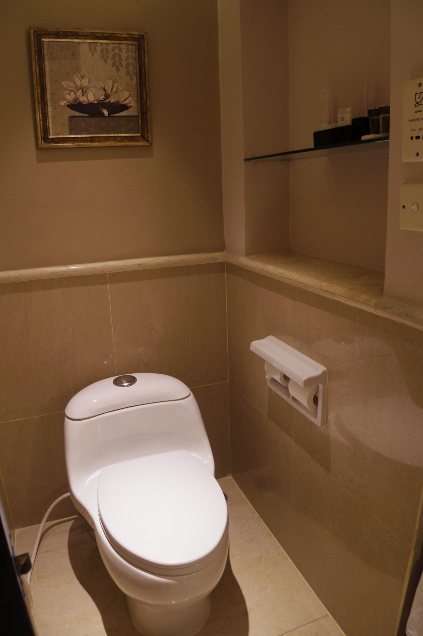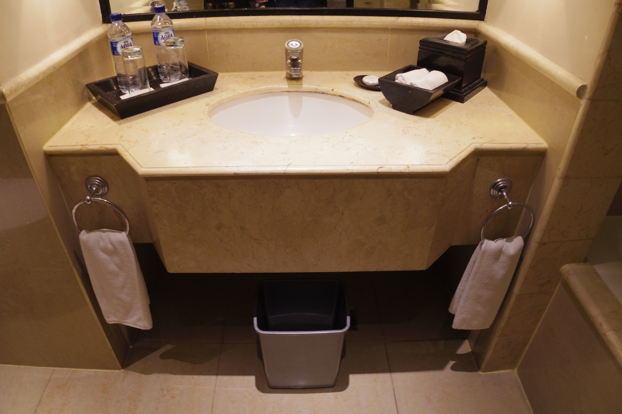 フロントが7階にあり、客室はフロント階より下の階にある造り。部屋も洗面台も清潔。ペットボトルのミネラルウォーターの無料サービスあり。4本も置いてあった。箱ティッシュ、ポット、アメニティも揃っていた。シャワーは上部固定式なので使いづらい。お湯は熱いくらいに出がよかった。広い中庭もあり。空港からも近く便利。