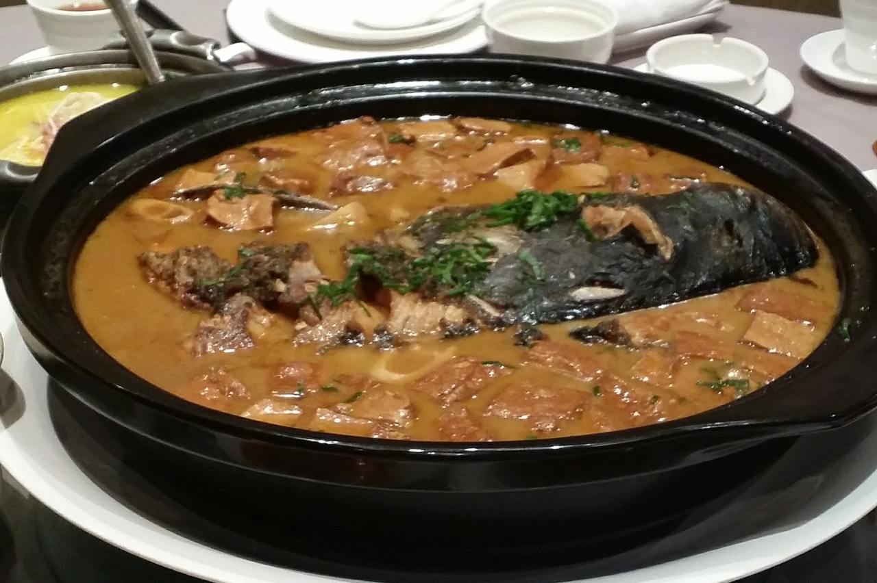 夜の食事は仕事先の人におまかせで下のですが大きな魚の鍋みたいなものが来ました。