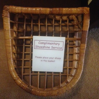 かごに靴を入れておくと靴磨きもしてくれます。無料です。今回は磨いてもらいませんでしたが、次回はぜひやってもらおうと思います。