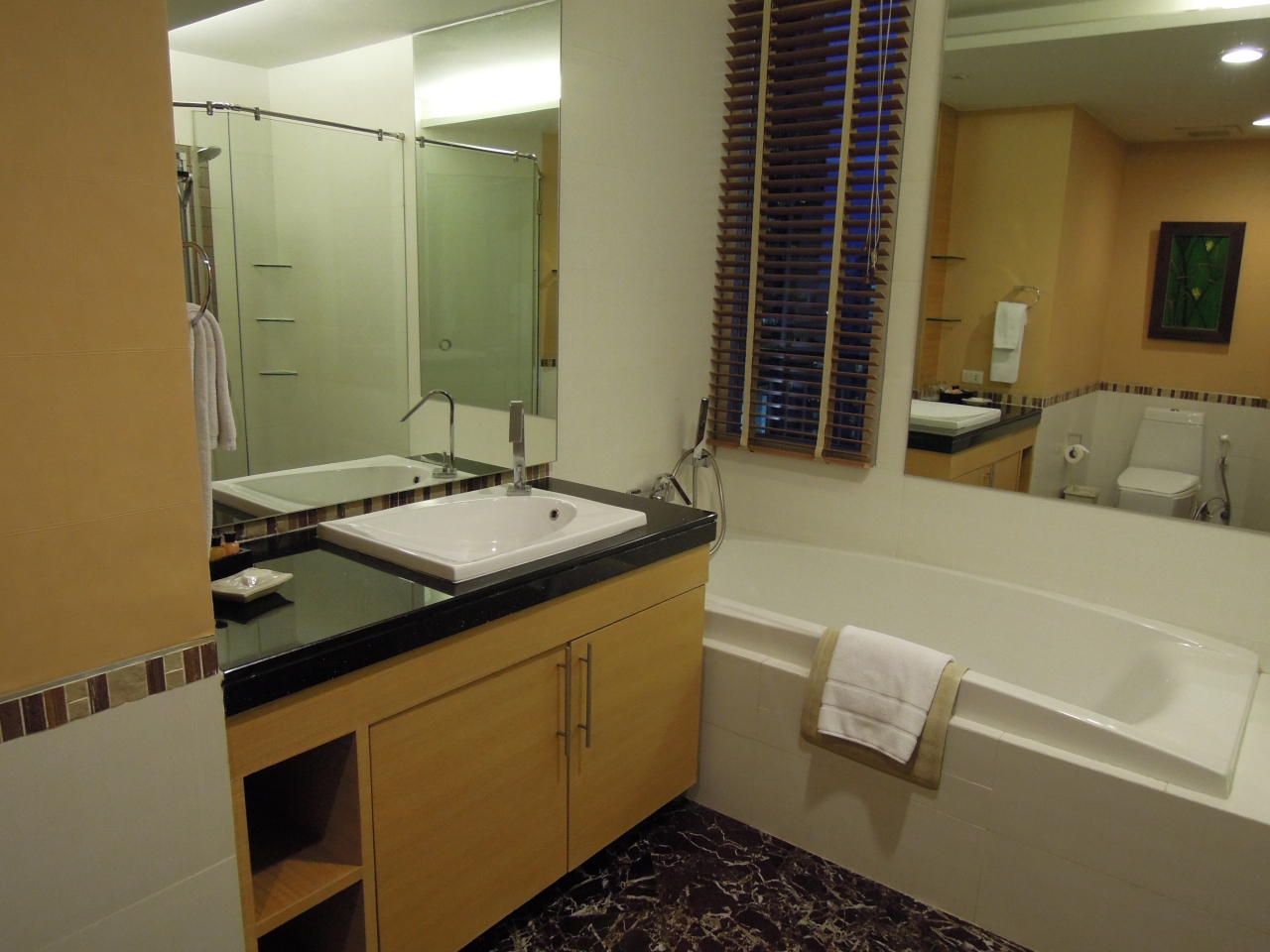 2ベッドルームの広い部屋。朝のビュッフェも日替わりでメニューが違ったのでおいしく頂けました☆大きなクローゼットや化粧台も助かりました。またバスルームの他にシャワーもあったので女子3人には助かりました。ただ残念なのがすぐお湯切れする所。バスタブにお湯を入れると後半にはもう水。毎日震えながら水のシャワーを浴びていました。あと水周りに小さな虫がチラホラいるのもマイナスポイント。