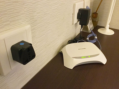 中でも良かったのが各部屋にWIFIルーターが設置されていたこと。これなら電波が弱くてネットができないということはありません。もちろん接続は無料です。あとコンセントにはユニバーサルタイプのアダプターが付いていたので日本タイプのプラグがそのまま刺せます。