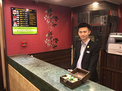 ホテル代の高い香港で、安いながらも快適で立地条件も良いコスパの優れたホテルです(1泊約4200円)。場所は、MTR佐敦(ジョーダン)駅から徒歩5分、大通りから一つ入った吳松街(Woo Sung Street)にあり、すぐ隣の通りは廟街夜市で有名なテンプルストリート(男人街)。周囲は美味しいレストラン、食堂がならぶ繁華街です。