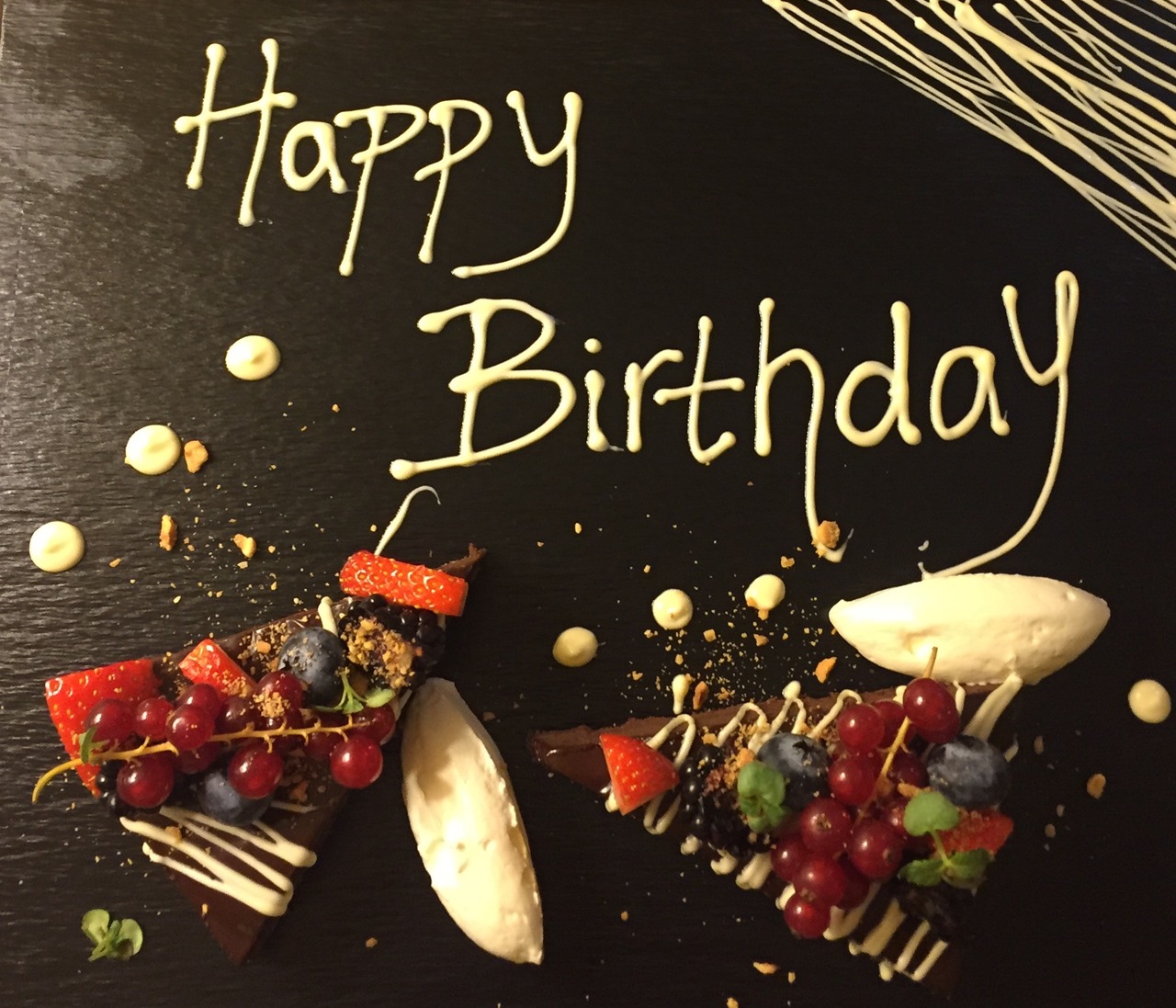 シェラトンホテル滞在中に誕生日を迎えましたら、ホテルからバースデーケーキプレートがお部屋に届きました。