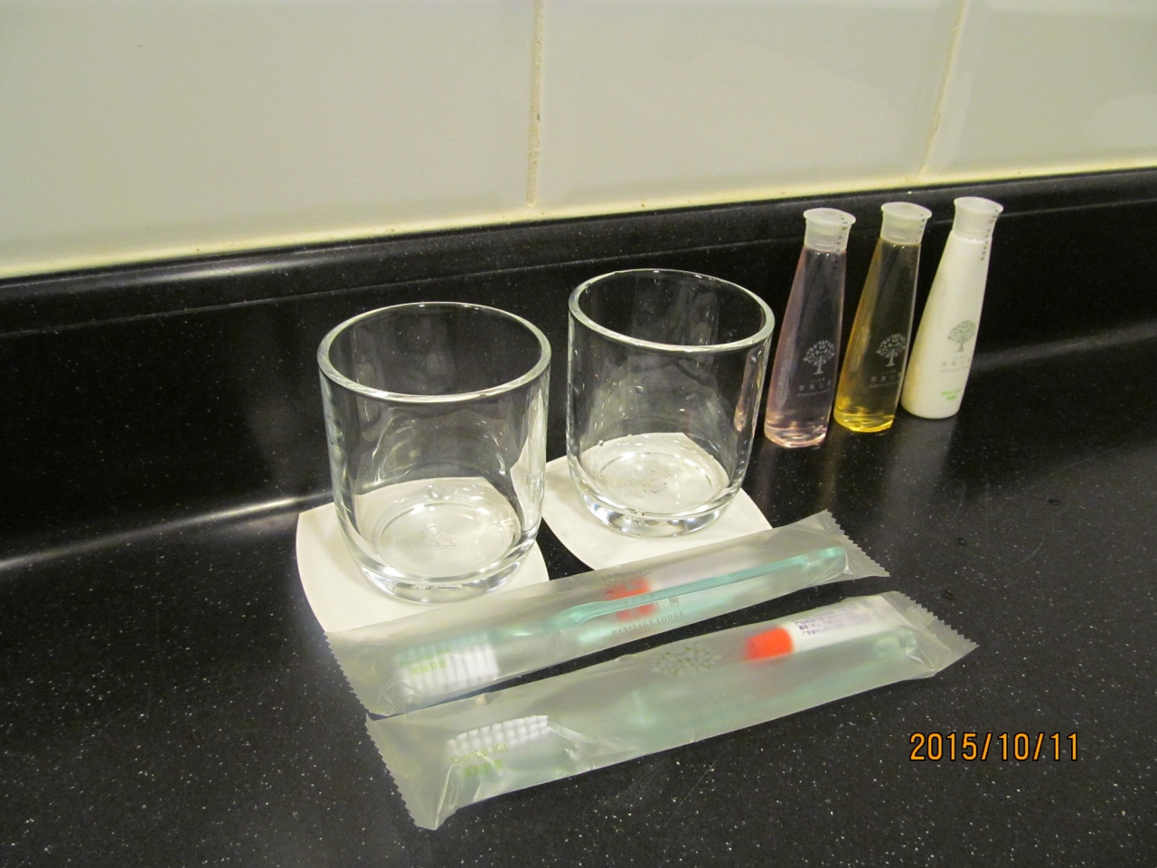 部屋は、価格の割には広めで綺麗でした。大きめのクローゼット、金庫、使い捨てスリッパ、湯沸かしポット、湯のみ、ティーバッグのお茶2個、小さめのペットボトルのお水2本(補充あり)、ティッシュ、冷蔵庫(夜になったら運転音が大きくなったのでOFFにしました)がありました。バスタブなし、カーテンで仕切るシャワーブースは広め。シャンプー、ボディソープ、ボディローション、固形石鹸、歯ブラシセットあり。シャワーの水圧は問題ないですが、水量が安定せず、熱くなったりぬるくなったりを繰り返していました。2人で宿泊で、カードキーは1枚でした。部屋の中に椅子が1脚のみで少し不便でした。部屋でも無料Wi-Fiが使え、パスワードはカードキーと一緒に渡されました。
