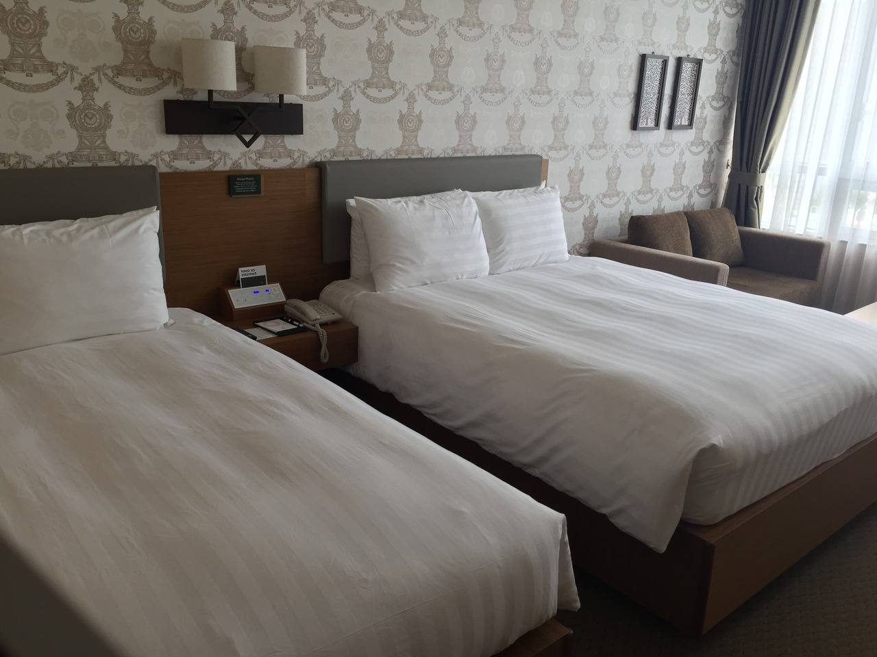 もともと部屋のタイプは普通のツインのはずでしたが、グレードアップしてくれたみたいで、デラックスツインのお部屋に泊まれました。