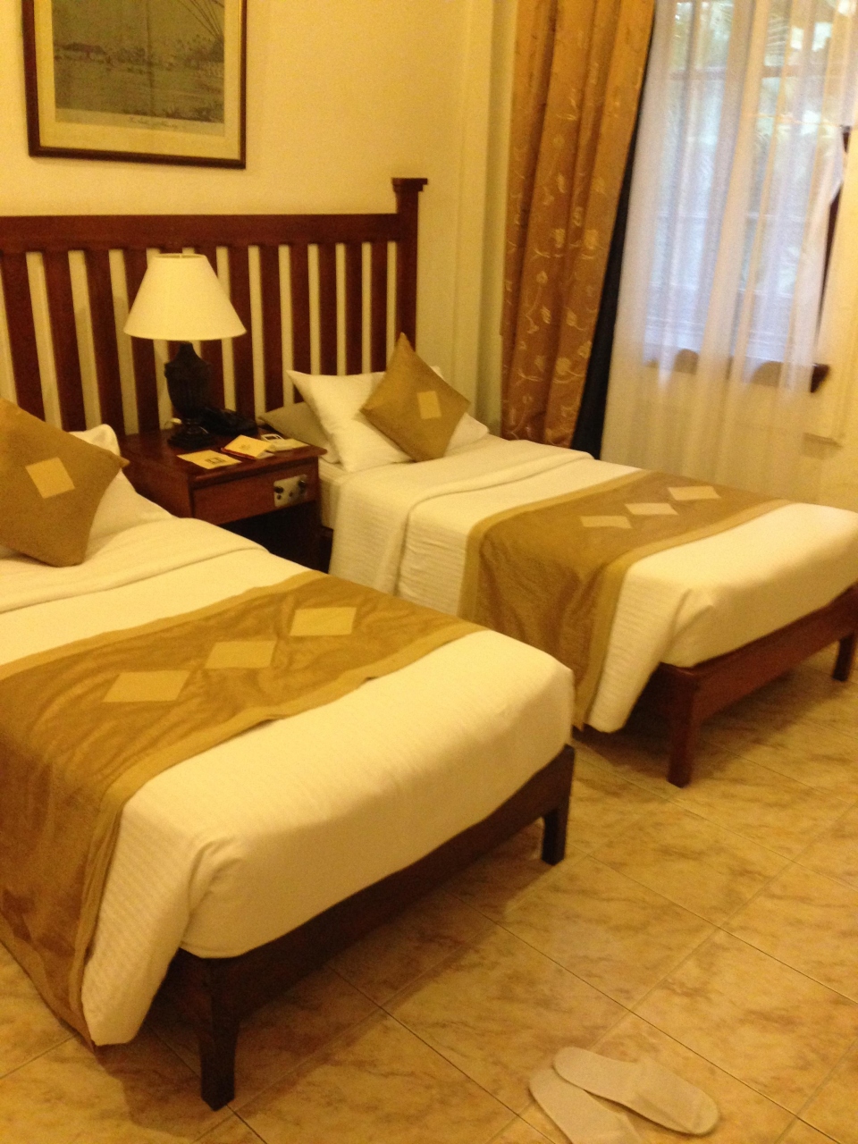 ツアーで泊まりました。ホテル自体は建物が古めですが、室内は掃除も行き届いていましたし、水も1部屋に2本、ありました。シャワーも可動式でしたし、歯磨き以外のアメニティは揃っていました。スリッパはありませんが、ドライヤー・ポットがありました。夕食はバイキング。私は食べませんでしたが焼き立てのナンが食べれたようです。