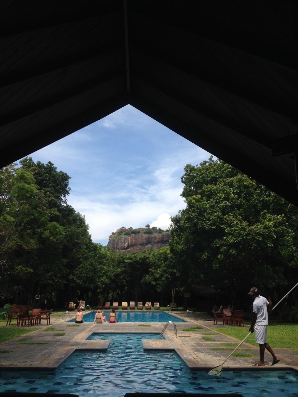 ツアーで泊まりました。ホテルのロビーを抜けたプールサイドからシギリヤロックが見えて素晴らしいです。客室はきれいに掃除されています。バスルームはシャワーのみで、シャンプー・リンス・石鹸くらいです。ポット・ドライヤーはあります。水も2本ありますが、スリッパ・歯磨きはありません。夕食・朝食がバイキングで普通においしいです。土地柄、虫が多めなので虫よけが必要かもしれません。アーユルベーダも別棟で受けられます。
