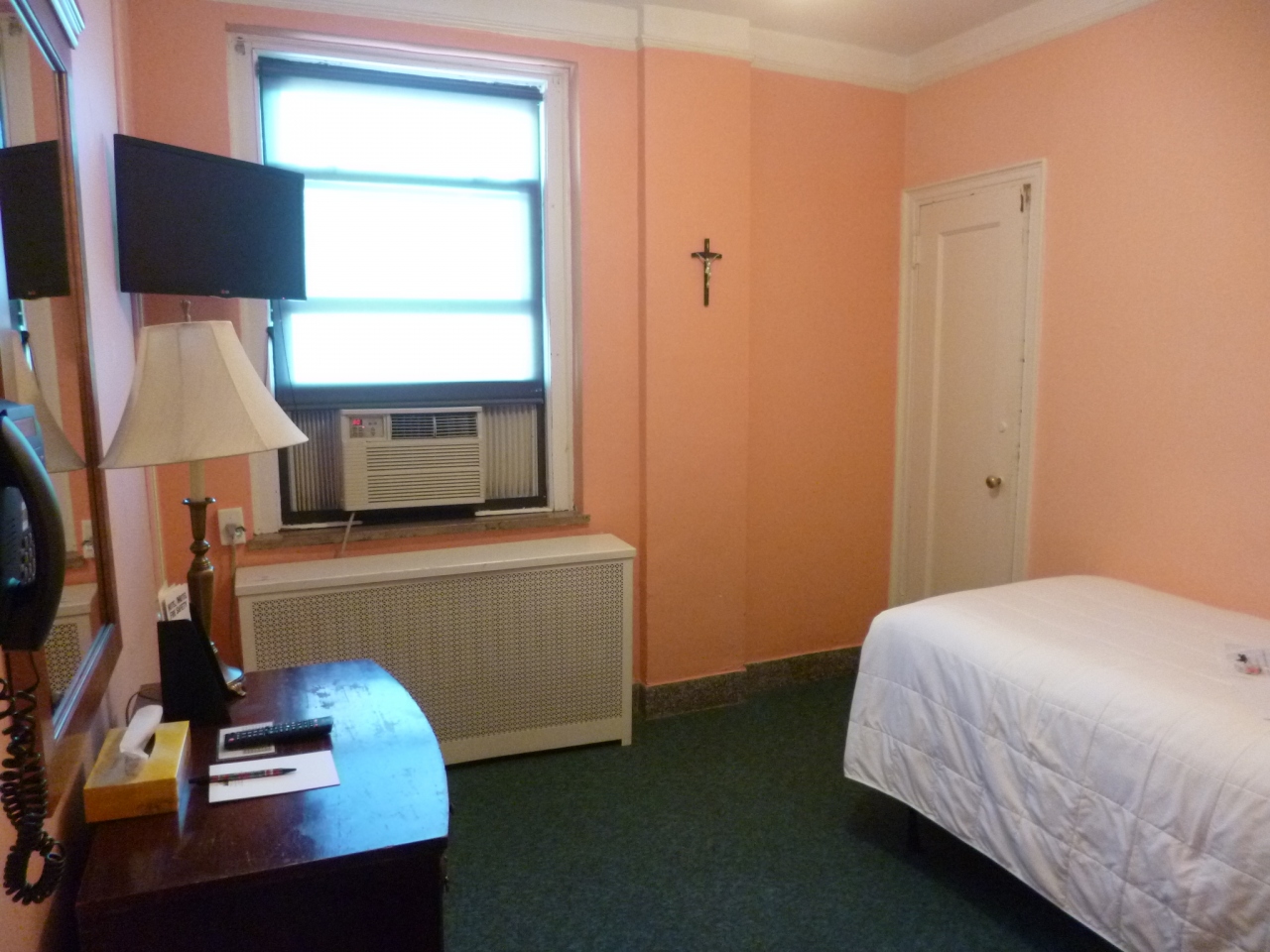 地下鉄E号線の23rd St.駅が近いです.徒歩で2,3分でした.地下鉄1号線の23rd St.駅からでも5分ちょっとです.宿泊料金を思えば,部屋はマンハッタンでは広めと思います.ただし,冷蔵庫,コーヒーメーカーなどはなかったです.コップはビニールでした.全体的に古い感じで,エアコンは結構うるさいです.ホテル内の情報を書いた案内がなく,1Fに水やお湯があることなどは,受付で訊くまでわかりませんでした.