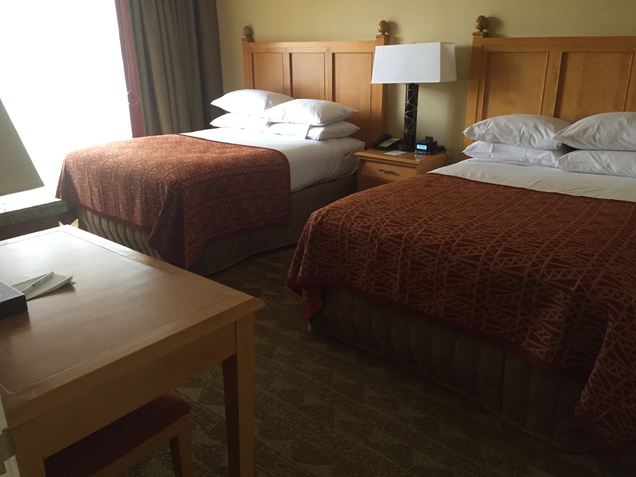 泊まったのは9階、シティビューで眺めはまったく良くありませんでしたが、リビングと寝室の2部屋に分かれている広い部屋でした。子ども1人大人3人で止まったので、広いのは助かりました。朝9時くらいにホテルに着いたのですが、アーリーチェックインですぐ部屋に入れたのも有り難かった。