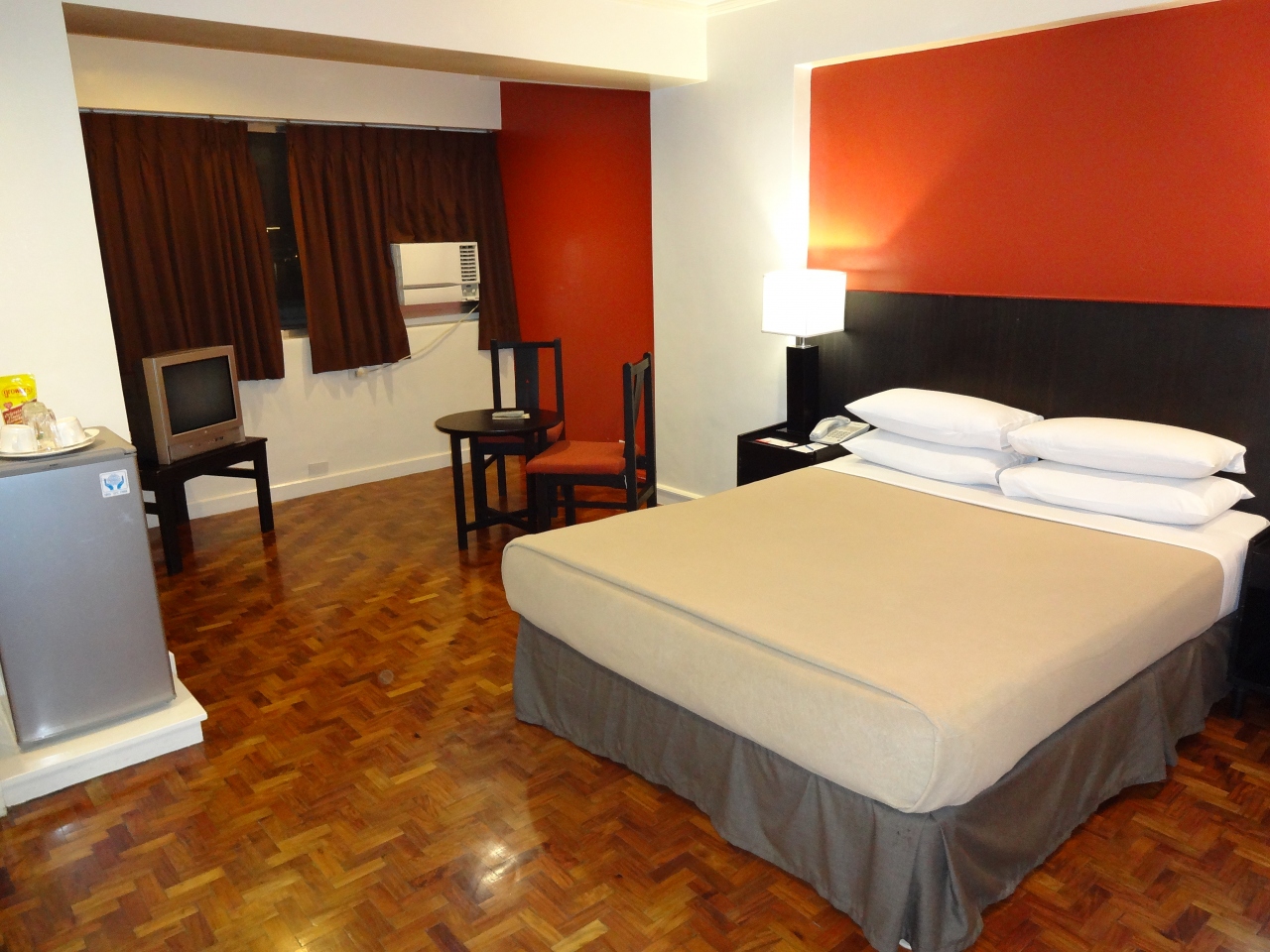 広いビジネスホテルのイメージ。バスタブはないが、セーフティボックス等必要なものはすべてそろっているし、ベットその他も清潔で問題なし。ホテルから左5分くらいにセブンイレブンがある。午前3時頃にホテル前でメータータクシーを拾い、第3ターミナルまで80ペソで行くことができたので、トランジットなどでホテルで寝るだけのひとなどにお勧め。