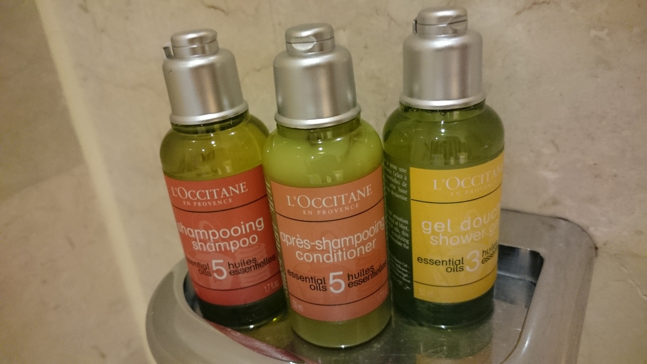 低層階でしたが、ツインタワーviewのお部屋でした。アメニティもロクシタンで、とてもよい香りでした。バスソルトも置いてあります。
