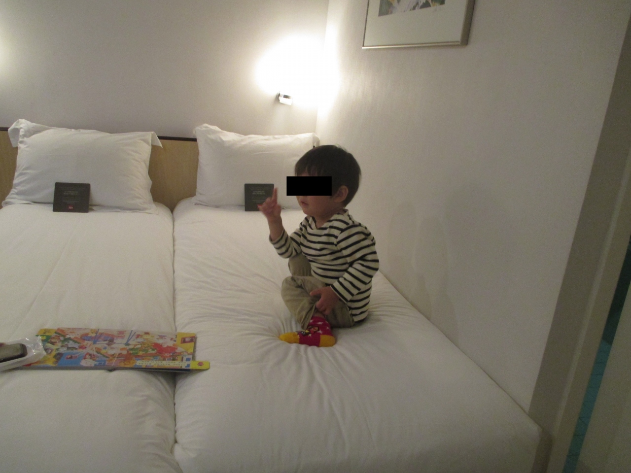 弾丸旅行につき、ホテル滞在はほとんど無いことを想定していたので、安いホテルを探していました。といっても、今回はもうすぐ2歳のおチビを連れての旅行ということで、そこそこ清潔感も必要です。HISのホームページにてサービス料込み9,500円(1部屋)のプランが出ていたので、交通の便が良いこともあって、迷わず予約しました。